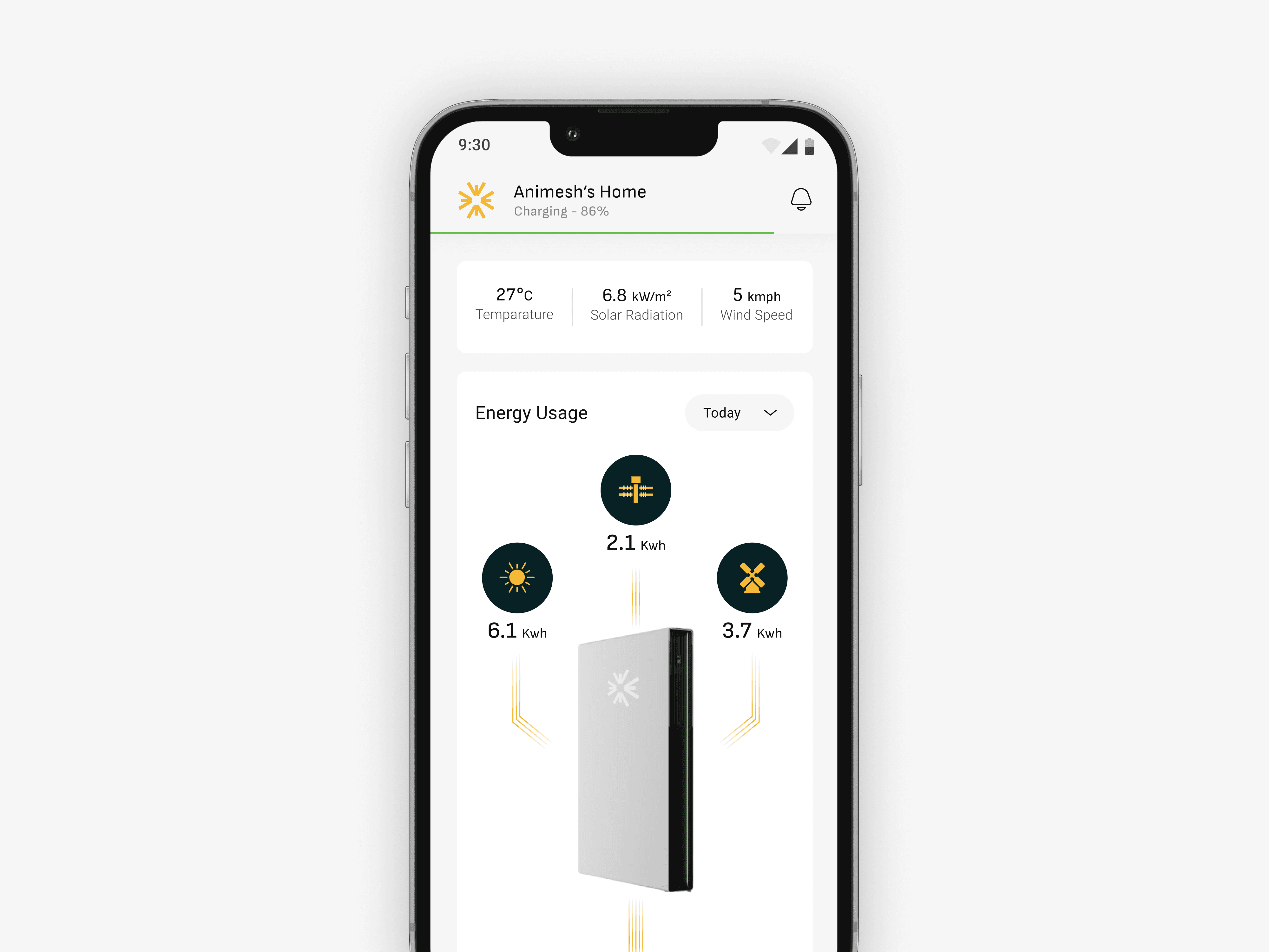 And flows out based on real-time household demand. All the data on energy generation and consumption can be gathered using a battery pack which sends data to software through IoT.